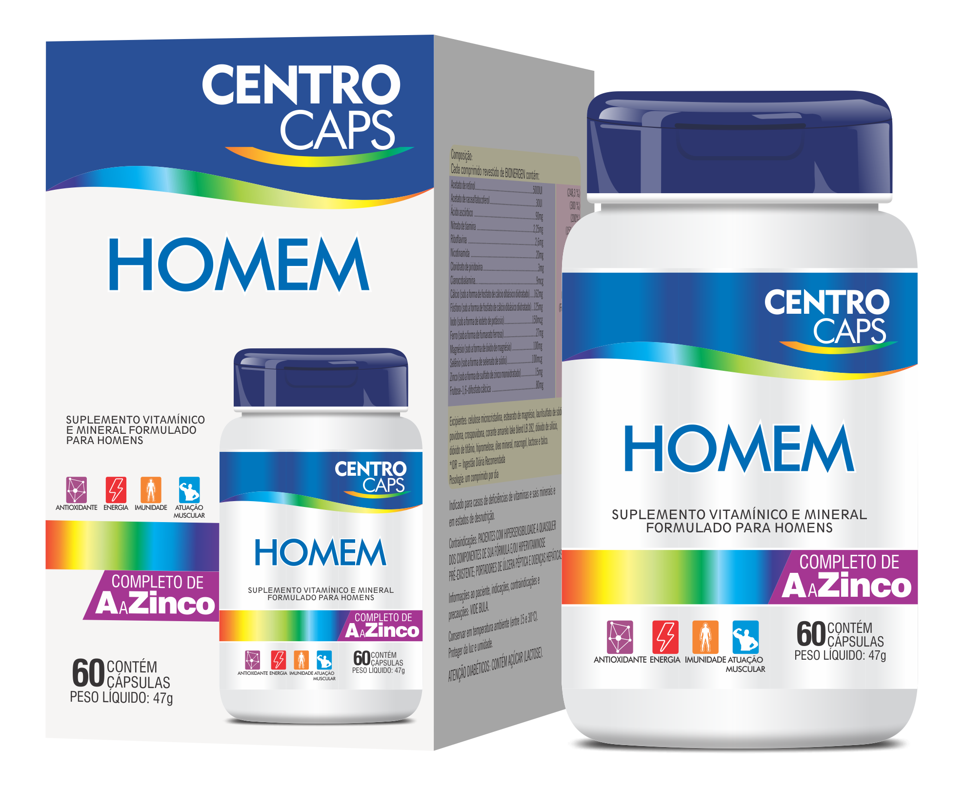 Combinação perfeita de vitaminas e mineiras, desenvolvido exclusivamente para as necessidades diárias do homem, trazendo mais disposição e energia para sua rotina que exige muito de você.